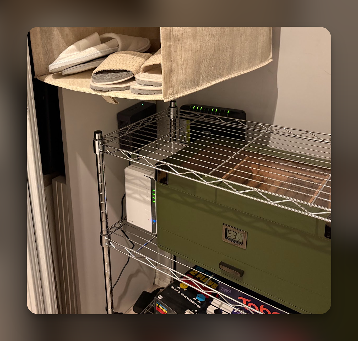 I plugged some of the HDDs into a USB DAS enclosure and attached them to the mini PC, a few others into a NAS, installed headless linux, ufw, docker, caddy, and we’re off to the races!